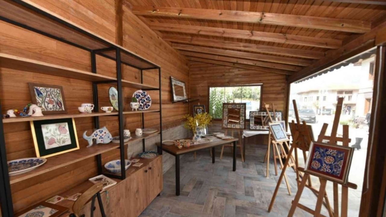 Türk-İslam Geleneksel El Sanatları Atölyesi çini ve kazaziye kursu öğrencilerinin eserlerinden oluşan sergi Yunus Emre Kültür Parkı’nda sanatseverlerin beğenisine sunuldu.