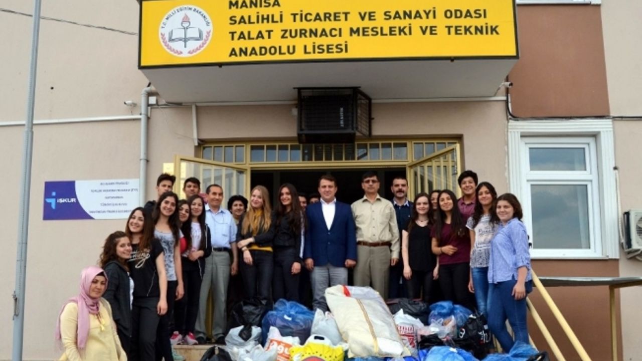 Manisa’nın Salihli ilçesindeki Ticaret ve Sanayi Odası Talat Zurnacı Mesleki ve Teknik Anadolu Lisesi Sosyal Dayanışma ve Yardımlaşma Kulübü öğrencileri "Kıyafet Toplama Kampanyası" kapsamında topladıkları kıyafetleri Salihli Belediyesi Sosyal Yardım İşleri Müdürlüğü yetkililerine teslim ederek örnek bir davranış sergiledi.