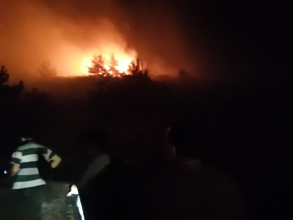 Manisa'nın Soma ilçesinde ormanlık alandaki yangının çıkış nedeni henüz bilinmiyor. Sert rüzgar ve arazinin sarp yapısı nedeniyle alevler hızla yayılıyor. Yangının devam ettiği alanın yakınında bulunan Tekeli Işıklar Mahallesi tedbir amaçlı tahliye ediliyor. Alevlere çok sayıda arazöz ve itfaiye ekibi karadan müdahale etmeye çalışıyor.
