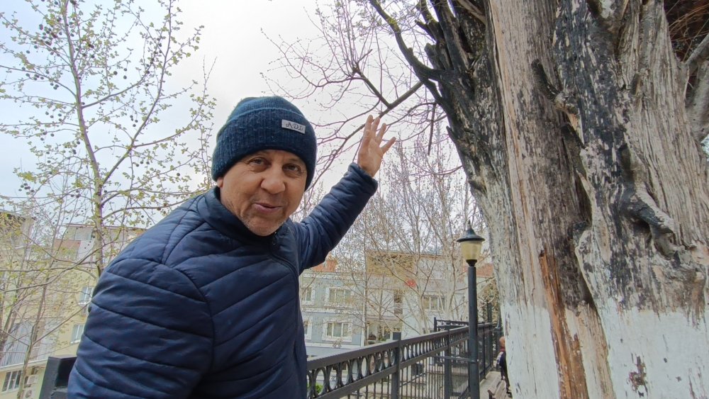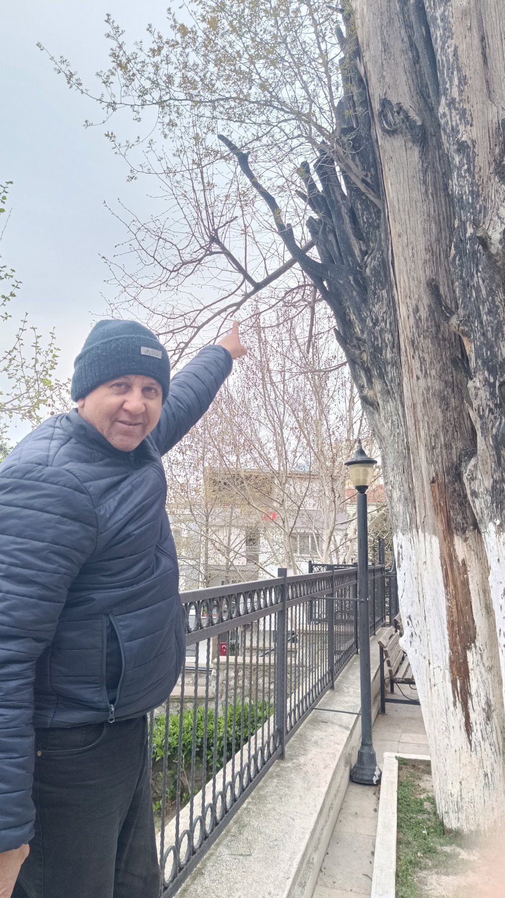 Mahalle sakini Alış, "Cami avlusunun alt kısmında 190'lı yıllarda 2 ev vardı. Evlerden birisinde yangın çıkmıştı ve söndürme çalışmalarına itfaiye müdahale etmesine rağmen selvi ağaçların dan birisine de sıçrayan yangın selvi ağacının yanarak kruumasına sebep oldu. Cami avlusunda yer alan bu selvi ağacımızın 650 yaşında olduğunu biliyoruz. Haki Baba Cami avlusunda yer alan Haki Baba türbesinin bitişiğindeki yer aln 2 selvi ağacının arasından günahı olan kişilerin geçemeyeceğine inanılır. Ben gençliğimde bu iki selvi arasından çok geçmiştim, tabi zamanla bu ara kapandı ve şu an kimsenin geçemeyeceğim bir yakınlığa ulaştı. Yangından sonra buradaki 2 selvi den yanan ağaç kurudu. Ama sanırım kuruyan selvi ağacı içine kuşlar tohum bıraktı, selvi ağacı içerisinden çitlembik ağacı çıktı. Sanırım bu yıl 3. yaşında olacak. Kurumuş ağacın içerisinde hayat bulan çitlembik ağacı hepimizi duygulandırıyor." diye konuştu. (Turgay Duyar)