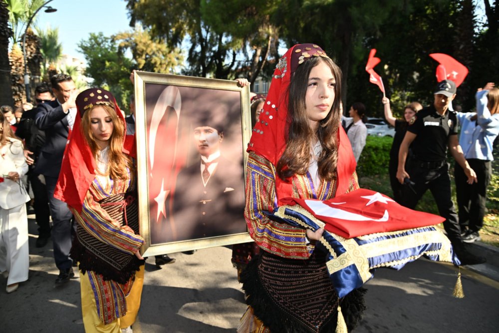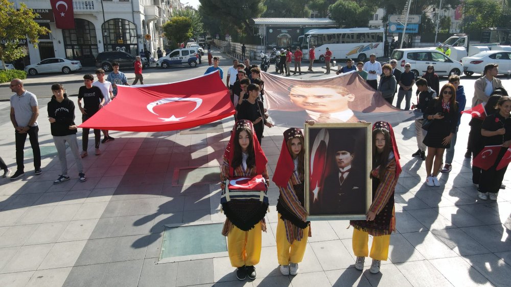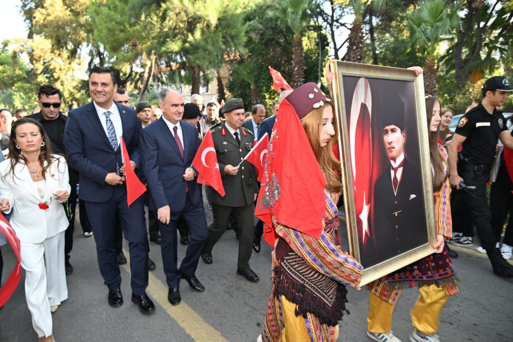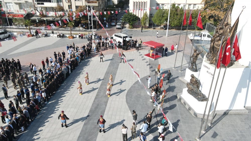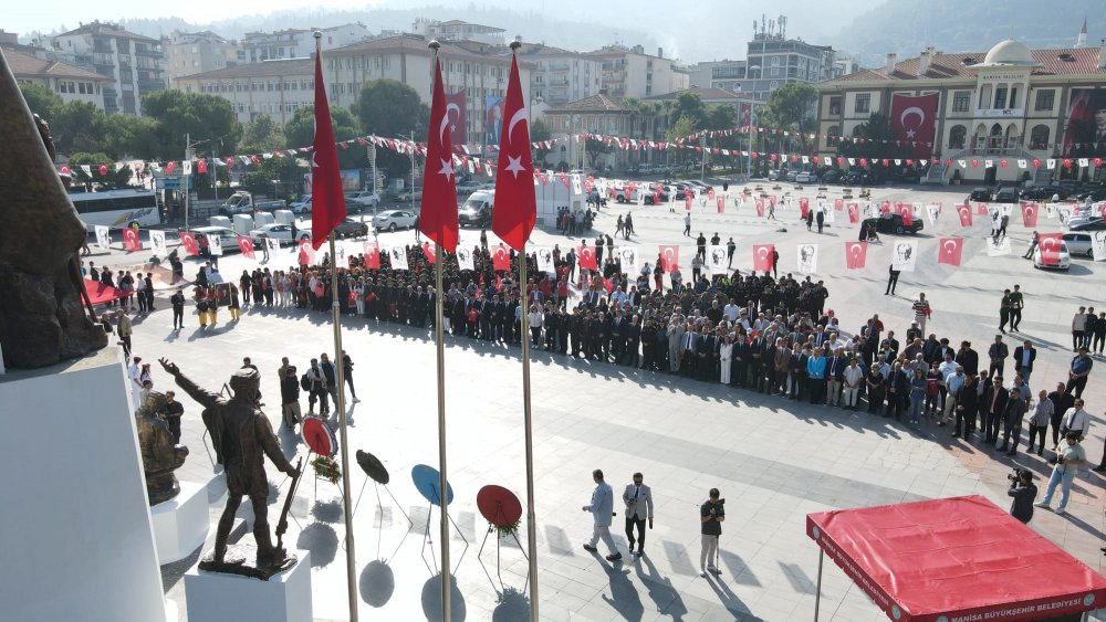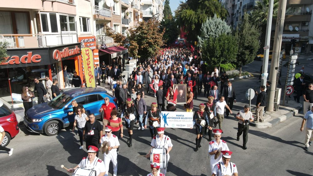 Daha sonra ise Manisa Büyükşehir Belediyesi Halk Dansları Zeybek Ekibi halkoyunları gösterisi düzenledi. Temsili karşılamanın ardından Vali Özkan ve protokol üyeleri, öğrencilerin taşıdığı Atatürk posteri ve Türk bayrağıyla bando eşliğinde Cumhuriyet Meydanı’na kadar kortej yürüyüşü yaptı.