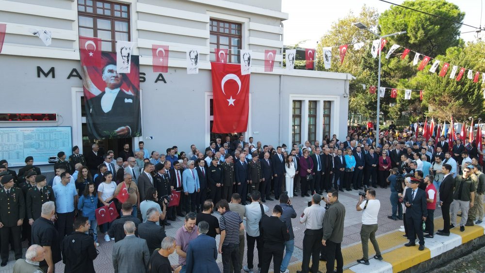 İlk kutlama töreni Manisa Tren Garı’nda gerçekleştirildi. Törene Manisa Valisi Vahdettin Özkan, Manisa Büyükşehir Belediye Başkanı Ferdi Zeyrek, Manisa Cumhuriyet Başsavcısı Kurtca Eker, Manisa Emniyet Müdürü Fahri Aktaş, Şehzadeler Kaymakamı Fatih Genel, Yunusemre Belediye Başkanı Semih Balaban, Şehzadeler Belediye Başkanvekili Yenal Yıldırım, AK Parti İl Başkan Yardımcısı Emre Şener, CHP Manisa İl Başkanı İlksen Özalper, MHP Manisa İl Başkanı Cüneyt Tosuner, İyi Parti Manisa İl Başkanı Zafer İksir, daire müdürleri, askeri erkân, siyasi parti ve sivil toplum kuruluşlarının temsilcileri ile öğrenciler ve vatandaşlar katıldı.
