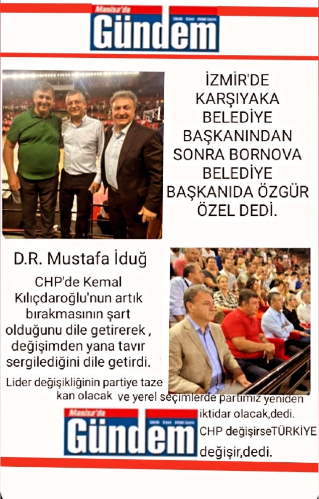 Yaklaşık 3 yıl önce KSK ile Bornova Belediyespor takımları arasında oynanan mücadelede, Karşıyaka Belediye Başkanı Cemil Tugay (solda), Özgür Özel (ortada) ve Bornova Belediye Başkanı Dr. Mustafa İduğ’un (sağda) verdikleri poz, bir takım yazılar ve gazetemizin logosu ile son derece amatörce bir görsel hazırlanmış, bu görsel de WhatsApp üzerinden partililere yayılmıştır.