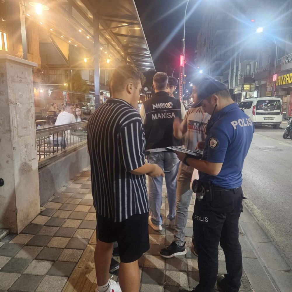 Manisa İl Emniyet Müdürlüğü asayiş ve narkotik ekipleri ile birlikte 11 ekip 27 personel ile Avni Gemicioğlu Caddesi, çevre ara sokaklar ve cadde üzerinde bulunan kafelerde şok uygulaması gerçekleştirildi.