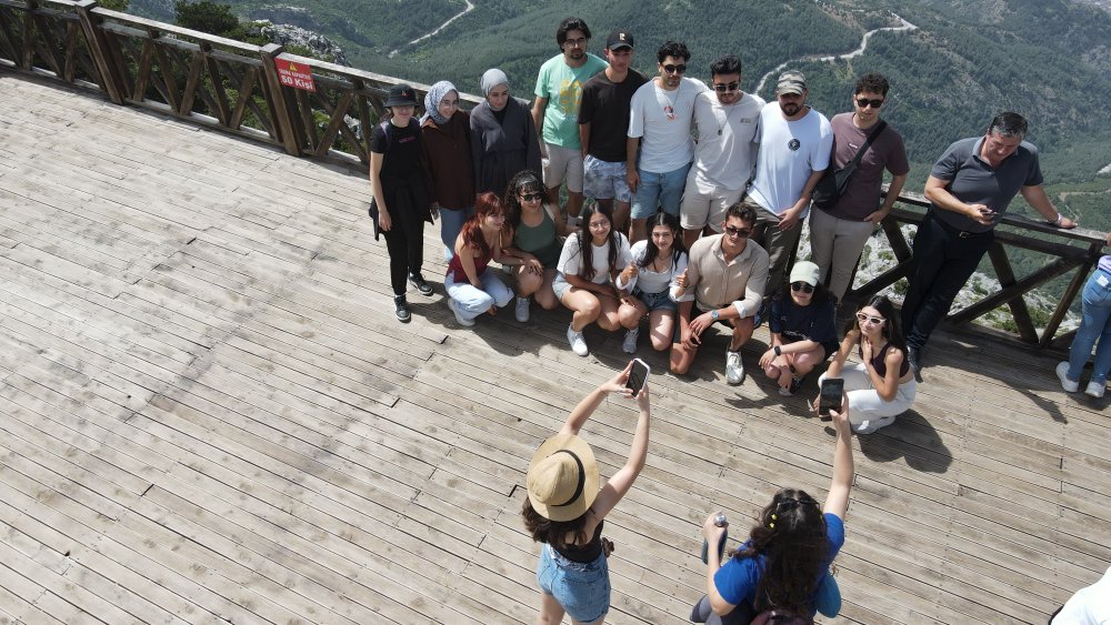 Öğrenciler daha sonra Atalanı Günübirlik Piknik Alanı, Çampınar mevki ile Turan Bayrak Tepe mevkiindeki ahşap seyir teraslarından doyumsuz manzaraları hep birlikte izlediler. (Turgay Duyar)