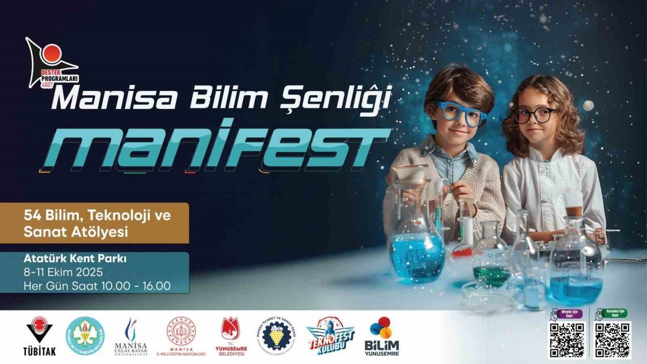 Manisa’da "MANİFEST-Bilim ile Manisa’yı Aydınlat, Geleceği Şekillendir" temalı bilim şenliği, 8-11 Ekim 2025 tarihleri arasında Atatürk Kent Parkı’nda gerçekleştirilecek.