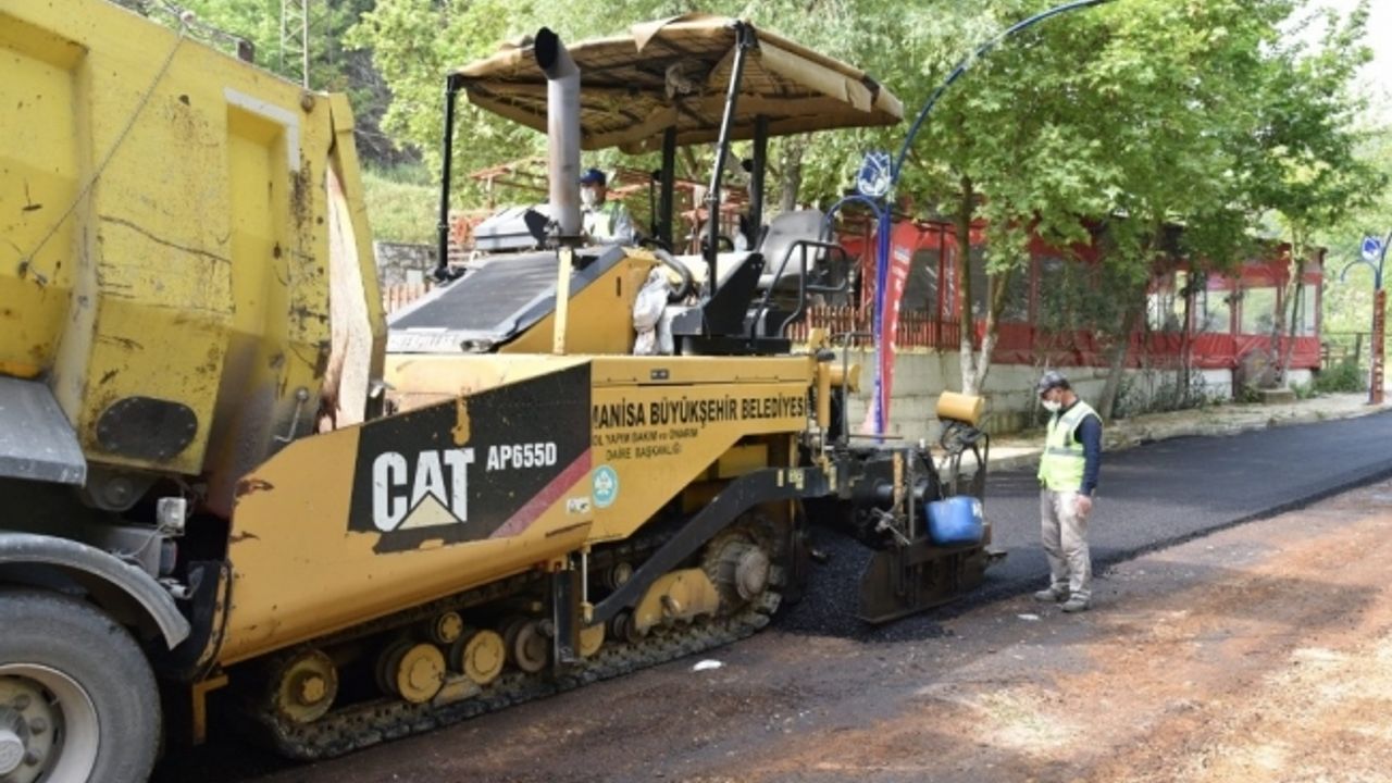 Manisa Büyükşehir Belediyesi Yol Yapım ve Onarım Dairesi Başkanlığı ekipleri, Kayapınar, Keçiliköy ve Gürle mahallelerinin faydalandığı yolda asfalt çalışması yapıyor.