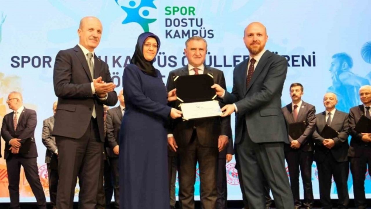 Selamlama konuşmalarının ardından, kriterleri sağlayarak "Spor Dostu Kampüs" unvanı alan Manisa Celal Bayar Üniversitesi Rektörü Prof. Dr. Rana Kibar, ödülü İlim Yayma Vakfı Mütevelli Heyeti Başkanı Necmettin Bilal Erdoğan, YÖK Başkanı Prof. Dr. Erol Özvar ve Gençlik ve Spor Bakanı Osman Aşkın Bak’ın elinden aldı.