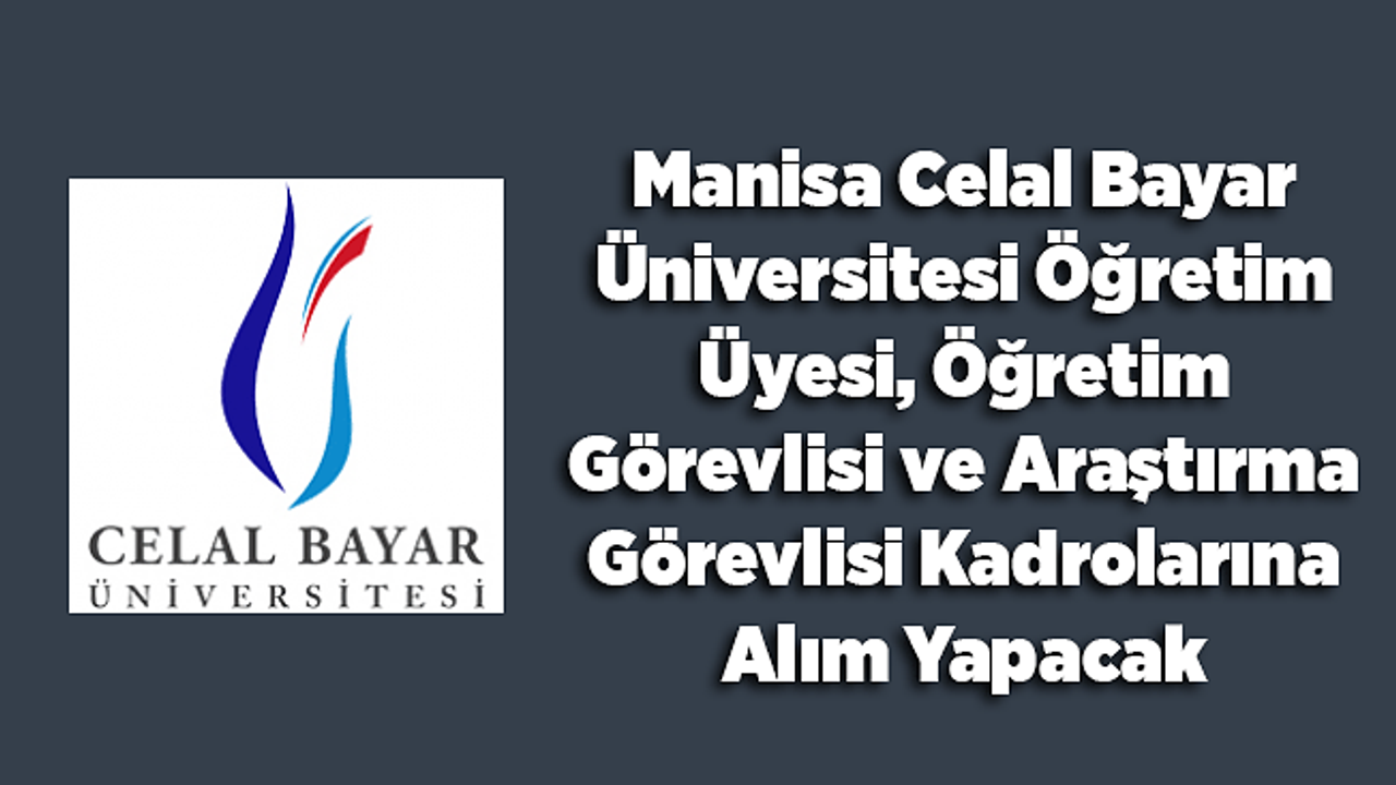 Üniversitemiz Akademik birimlerine, 2547 sayılı Yükseköğretim Kanunu ve Öğretim Üyeliğine Yükseltilme ve Atanma Yönetmeliği’nin ilgili hükümleri ile Manisa Celal Bayar Üniversitesi Öğretim Üyesi Kadrolarına Atama ve Yükseltme Yönergesi hükümleri doğrultusunda Öğretim Üyesi alınacaktır.