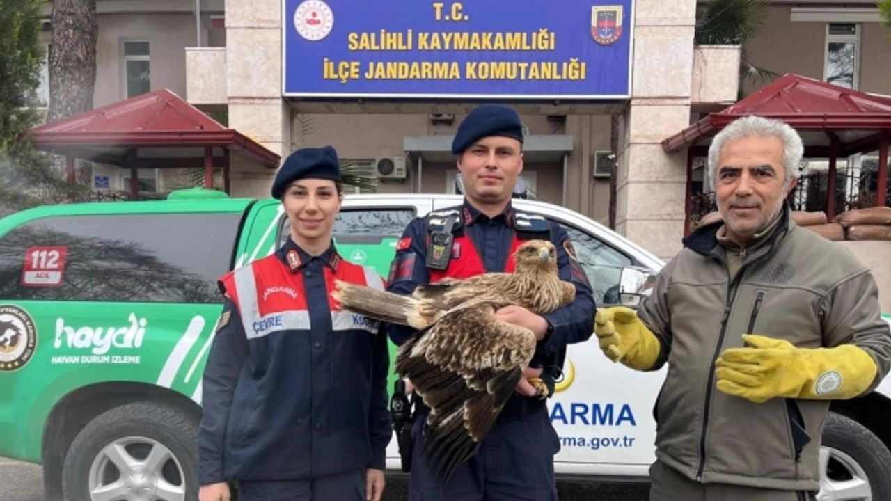 Manisa’nın Salihli ilçesinde devriye gezen jandarma ekipleri yaralı halde bulduğu kızıl şahine sahip çıktı. Jandarma, yaralı ve bitkin halde bulduğu kızıl şahini, doğa korumaya teslim etti.