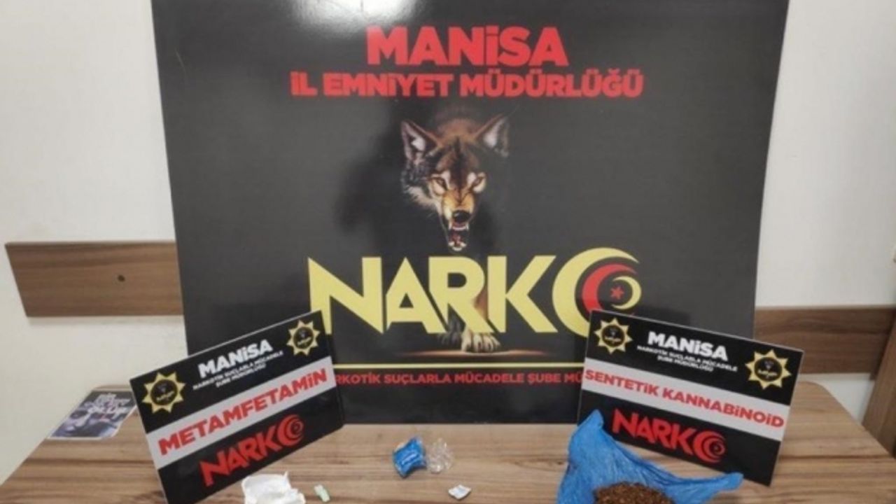 Uyuşturucu veya uyarıcı madde ticareti yapan, nakleden ve kullanan şahıslara yönelik çalışmalarını sürdüren Manisa İl Emniyet Müdürlüğü Narkotik Suçlarla Mücadele Şube Müdürlüğü ve İstihbarat Şube Müdürlüğü ekipleri, şüphelendikleri şahısları durdurup arama yaptı. Şüpheli şahısların yapılan üst aramasında 63 gram tütüne emdirilmiş Sentetik Kannabinoid, 32 gram Metamfetamin maddesi ele geçirildi. Uyuşturucu veya uyarıcı madde imal ve ticareti yapmak suçundan gözaltına alınan şüphelilerden Ş.Ç.(38) ve A.S.(37) sevk edildikleri adli makamlarca tutuklandı.