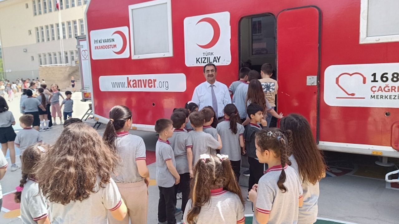 Okul bahçesinde gerçekleştirilen etkinlikte Manisa Kan Bağış Merkezi’nden 15 kişilik ekip ve 10 gönüllü görev yaptı.