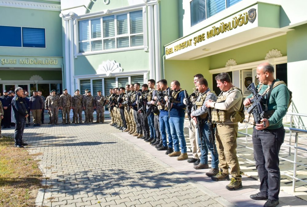 Suriye’nin Afrin kentide devam operasyonlar kapsamında bölgeye gönderilecek olan Manisa İl Emniyet Müdürlüğü Özel Harekat Şube Müdürlüğü personeli dualarla görev bölgesine uğurlandı.
