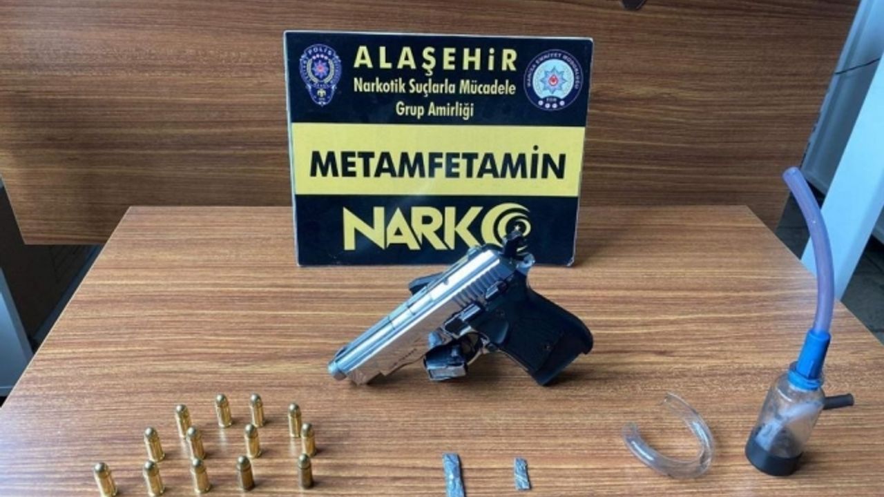 Manisa İl Emniyet Müdürlüğü Alaşehir Narkotik Suçlarla Mücadele Büro Amirliği görevlilerince uyuşturucu veya uyarıcı madde ticareti yapan, nakleden ve kullanan şahıslara yönelik yapılan fiziki takip sonunda şüpheli şahsın ikametinin önüne gelen araçta yapılan aramada; 2 parça halinde toplam 0,34 gram metamfetamin, 1 adet 7,65 tabanca ve 13 adet mermi, 2 adet uyuşturucu içme aparatı ele geçirildi. İki şahıs hakkında TCK 191’den adli işlem yapıldığı bildirildi. Fiziki takibi yapılan ikamette yapılan aramada ise; uyuşturucu madde paketlemeye yarayan folyo ele geçirildi. Konuyla ilgili ikamet sahibi şüpheli Ö.A. (46) hakkında ’uyuşturucu veya uyarıcı madde ticareti yapmak’ suçundan işlem yapılarak sevk edildiği mahkemece tutuklandı.
