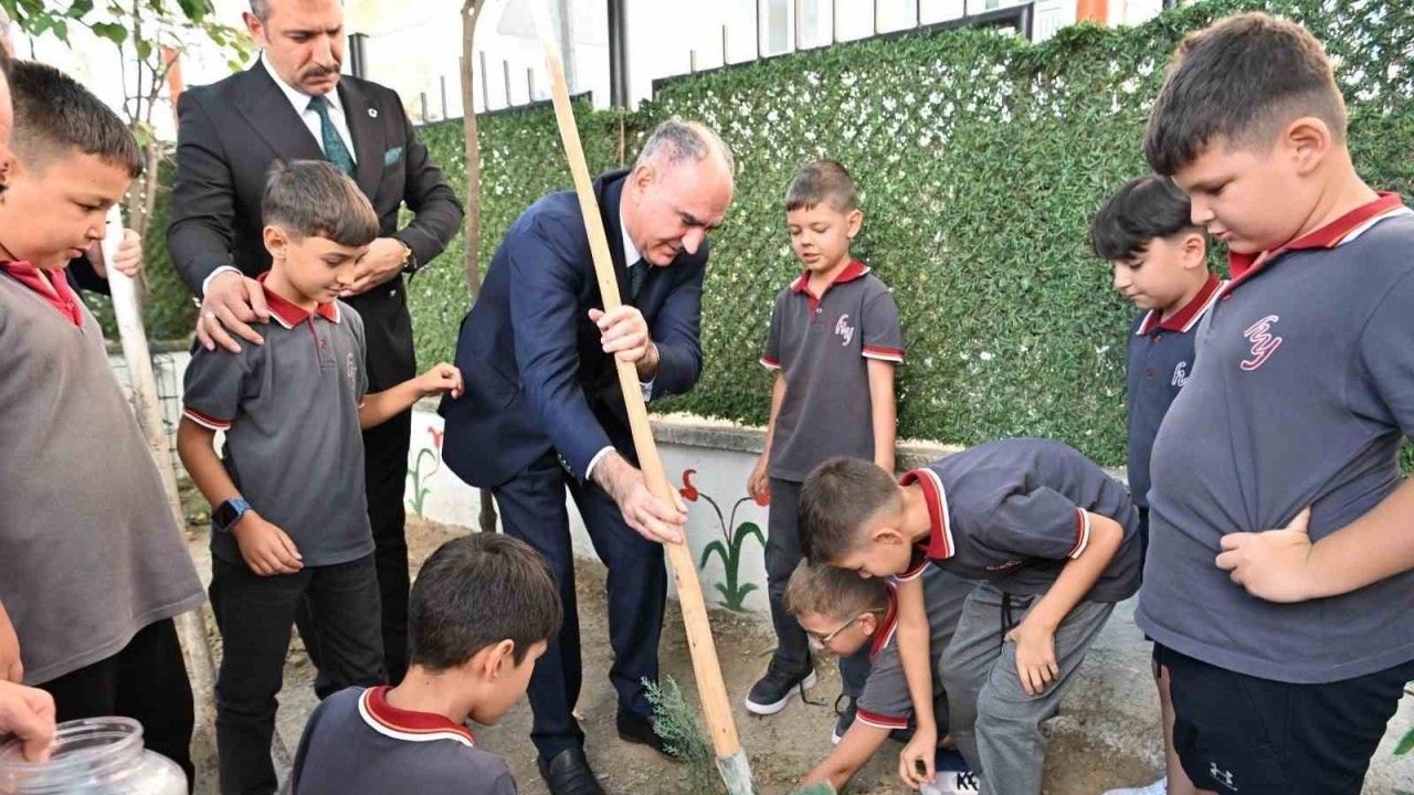 Vali Özkan ve protokol üyeleri ilk ders zilini çalarak öğrencileri sınıflarına uğurladı. Bu yılın ilk dersinde, öğrencilere orman sevgisi ve doğayı koruma bilinci aşılandı. "Her Çocuk Bir Fidan, İlk Ders Yeşil Vatan" temasıyla düzenlenen etkinlikte öğrenciler ve protokol üyeleri, fidanları toprakla buluşturdu.