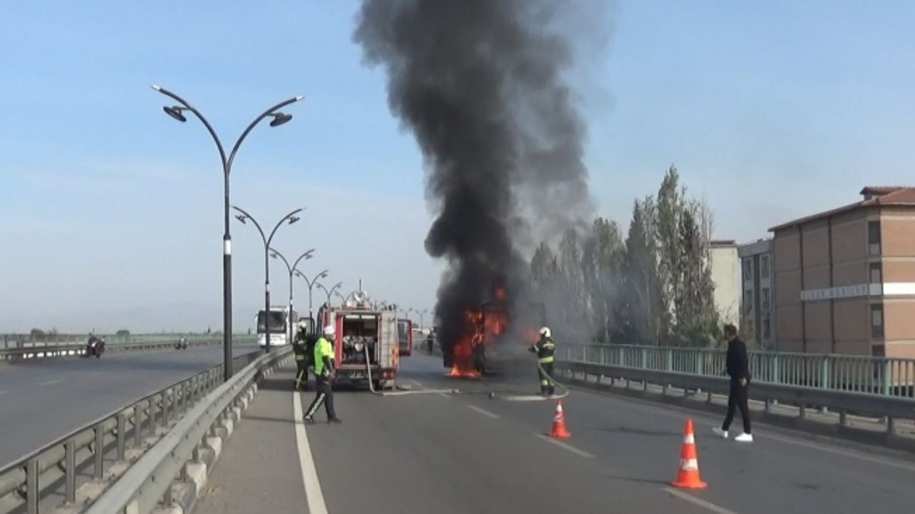 Yangın, Manisa’nın Salihli ilçesi Bülent Ecevit Köprülü Kavşak üzerinde meydana geldi. Edinilen bilgiye göre, Salihli istikametinden, Kula istikametine gitmekte olan Nevzat S. yönetimindeki 68 KC 998 plakalı kamyonet, henüz bilinmeyen bir nedenle yanmaya başladı. Sürücü Nevzat S.’nin durumu fark etmesi üzerine kamyoneti durdurarak, yolcu konumundaki yabancı uyruklu 1 kişi ile birlikte terk etti. Kamyonet kısa sürede alev topuna dönerken, çevredekiler durumu itfaiye ekiplerine haber verdi. İhbar üzerine gelen Manisa Büyükşehir Belediyesi İtfaiye Dairesi Başkanlığına bağlı Salihli İtfaiye Amirliği ekipleri yangına müdahale edip söndürdü.