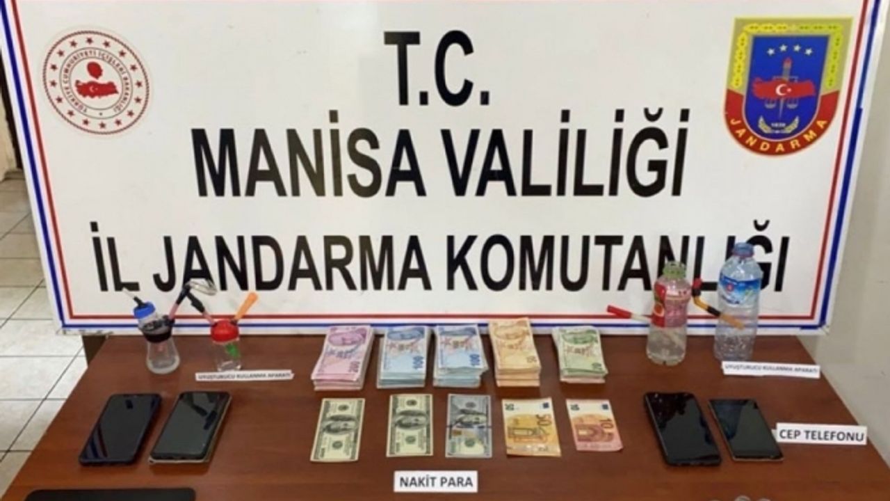 Öte yandan, jandarma ekipleri Yunusemre ilçesi Güzelyurt Mahallesinde G.V. isimli şahsın uyuşturucu satışı yaptığına dair istihbarat üzerine harekete geçti. Evde yapılan aramalarda metamfetamin olduğu değerlendirilen 5 gram uyuşturucu ve uyarıcı madde, 2 adet uyuşturucu kullanma aparatı, 23 adet reçeteli hap, 17 adet cinsel güç arttırıcı hap ile 48 bin 155 TL, 300 dolar, 60 euro nakit para ele geçirildi.