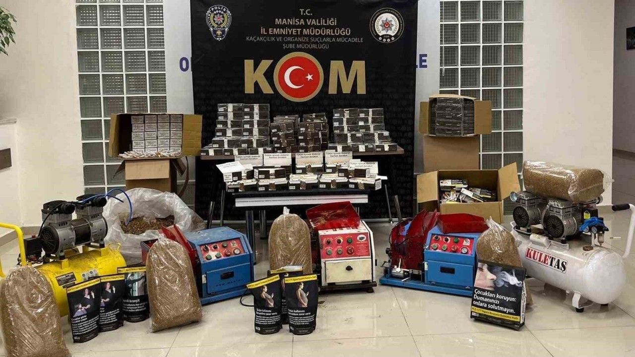 KOM Başkanlığı koordinesinde gerçekleştirilen operasyonda, il merkezinde 1, Turgutlu’da 1, Kula’da 2, Akhisar’da 2 ve Salihli’de 2 olmak üzere toplam 8 adrese baskın yapıldı. Yapılan aramalarda, 2 kompresör makinesi, 5 sigara sarma makinesi, 337,5 kilo kıyılmış tütün, 75 bin 360 adet içi tütün doldurulmuş makaron, 83 bin 800 adet boş makaron ve 51 elektronik sigara ele geçirildi.