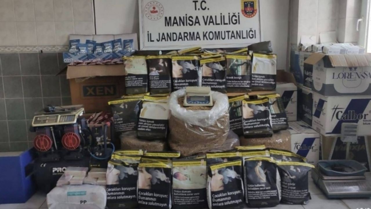 Manisa’nın Turgutlu ilçesinde jandarma ekipleri tarafından 2 şahsın ikamet ve depolarında yapılan aramalarda paketlenmiş tütünler, boş makaronlar kıyılmış tütünler ele geçirildi.