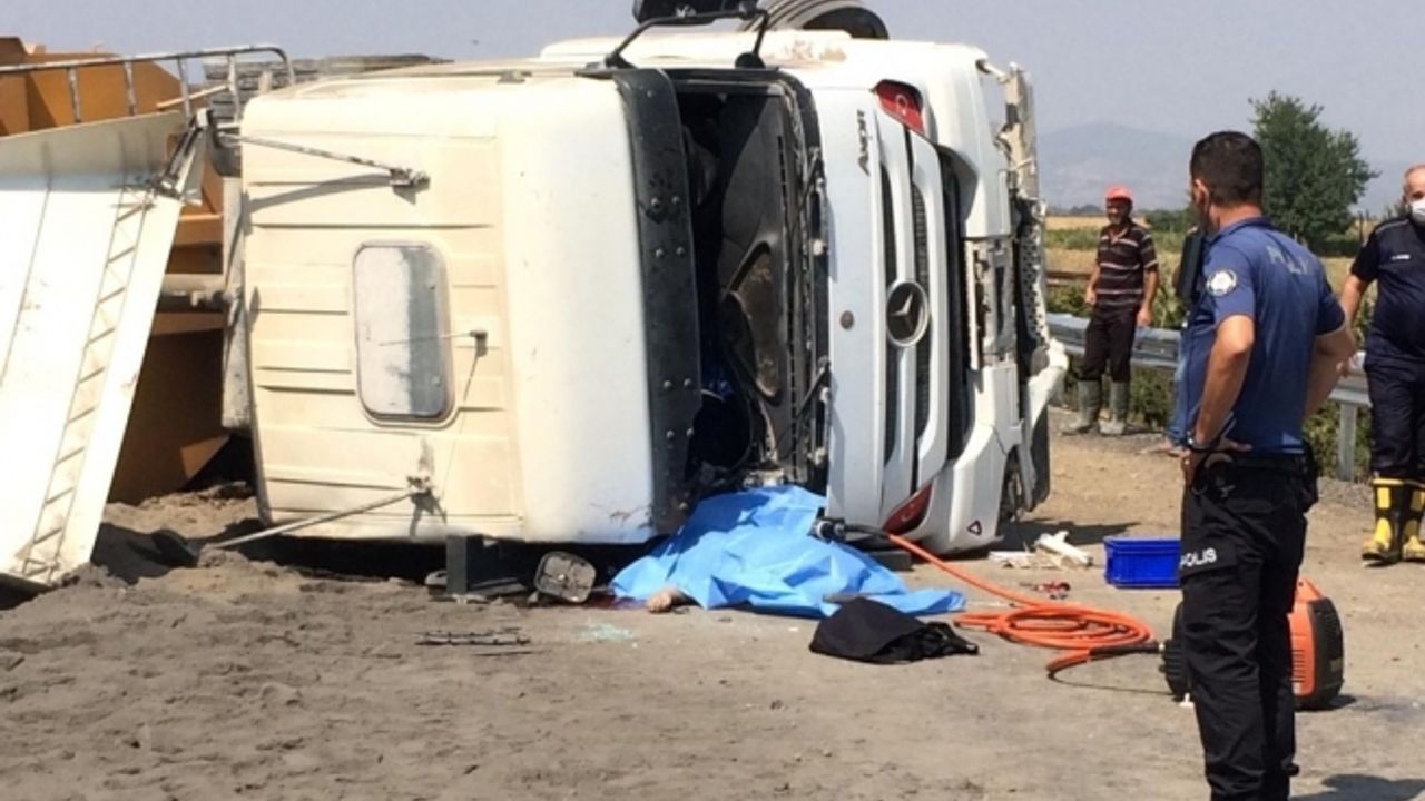 Edinilen bilgiye göre, Şehzadeler ilçesinde saat 12.30 sıralarında Manisa-Turgutlu Doğu Çevreyolu üzerinde Manisa’dan Turgutlu istikametine seyir halindeki Ahmet Karataş yönetimindeki 45 HH 254 plakalı tır, sürücüsünün direksiyon hakimiyetini kaybetmesi sonucu refüjdeki demir bariyerlere çarpıp karşı şeride geçerek devrildi. Tır sürücüsü Ahmet Karataş olay yerinde hayatını kaybetti. Polis olayla ilgili soruşturma başlatırken, yola saçılan kumlar uzun süre trafiğin kapanmasına neden oldu.