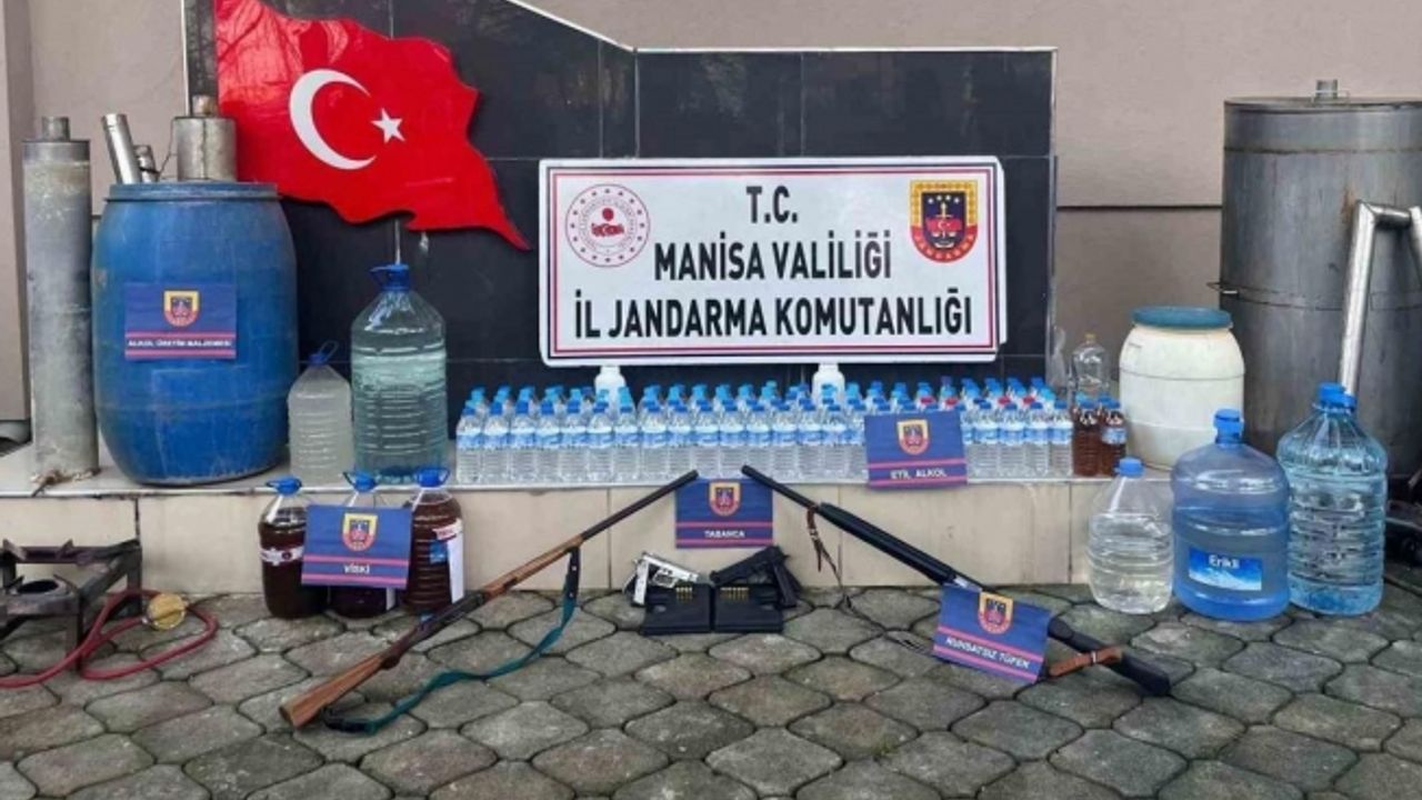 Manisa İl Jandarma Komutanlığı KOM Şube Müdürlüğü ve Salihli İlçe Jandarma Komutanlığı ekipleri, istihbarat çalışması sonucu R.E. (61), N.E. (55) ve A.E.’nin (61) ikametinde sahte içki üretildiği bilgisi üzerine harekete geçti. Operasyon düzenleyen ekipler, 3 ikamette ve eklentilerinde yapılan aramada damacana ve pet şişeler içerisinde 40 litre viski, 70 litre rakı olmak üzere toplam 110 litre sahte içkinin yanı sıra 47 adet 0.5 litre satıma hazır alkol, 2 adet av tüfeği, 2 adet kuru sıkı tabanca, 15 adet 9 mm kuru sıkı tabanca fişeği, 3 cep telefonu ile rakı imalatında kullanılan 2 adet damıtma düzeneği ele geçirildi. Sahte içkilere ve malzemelere el konulurken, olayla ilgili soruşturma sürüyor.