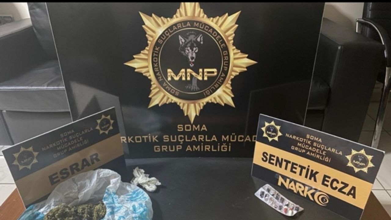 Manisa İl Emniyet Müdürlüğü Soma Narkotik Suçlarla Mücadele Grup Amirliği görevlilerince uyuşturucu veya uyarıcı madde ticareti yapan, nakleden ve kullanan şahıslara yönelik yürütülen çalışmalarda 1 şüpheli şahsın üzerinde ve ikametinde yapılan aramalarda, 31 gram esrar maddesi, 2 adet sentetik ecza hapı ele geçirildi. G.Ö. (29) isimli şüpheli şahıs ’Uyuşturucu veya uyarıcı madde imal ve ticareti yapmak’ suçundan gözaltına alındı. G.Ö., sevk edildiği adli makamlarca tutuklandı.