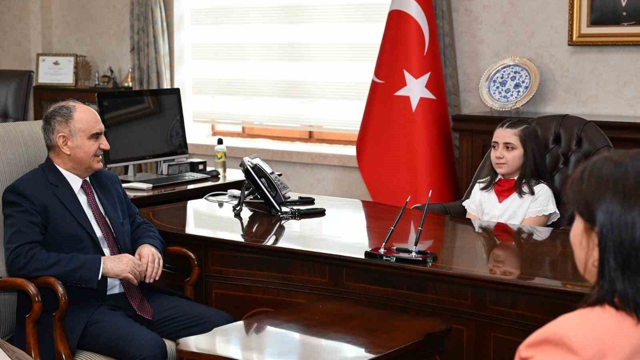 Manisa'da 23 Nisan Ulusal Egemenlik ve Çocuk Bayramı kutlamaları kapsamında Valilik makamı, temsili olarak Ahmet Tütüncüoğlu İlkokulu 3. sınıf öğrencisi Mehlika Örtülü'ye devredildi.