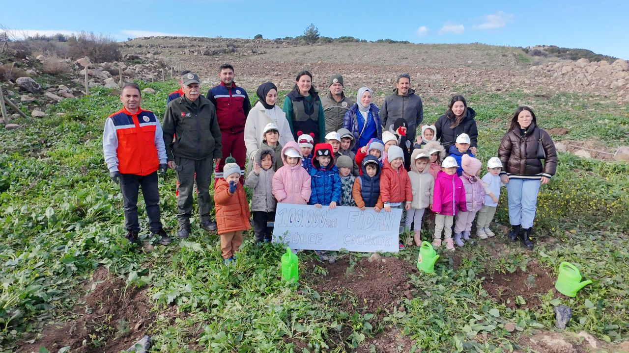 Manisa Orman İşletme Müdürlüğü Ağaçlandırma Şefliği personeli önderliğinde Yunusemre ilçesi Akgedik mevkiinde yanan ormanlık alanda Özel Gülce Anaokulu’nun 25 minik öğrencisi, öğretmenleri nezaretinde 100 bininci fidanı toprakla buluşturdular.