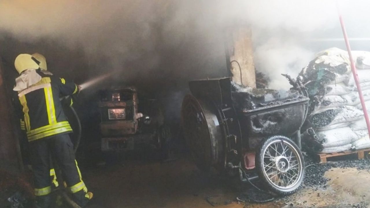 Yangında İsmail S.’ye ait ev ve avlu kullanılmaz hale gelirken, avluda bulunan iki adet traktör, bir motosiklet, ilaçlama makinaesi, ağaç motoru ve avluda bulunan birçok malzeme küle döndü.