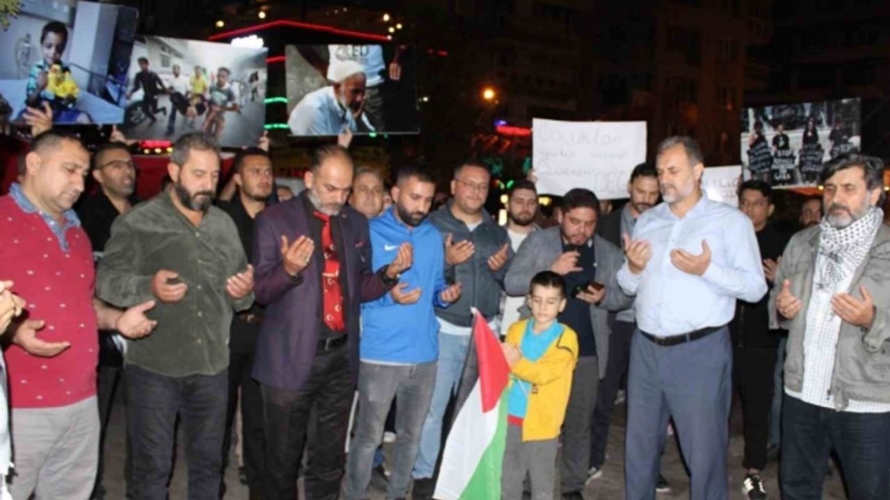 Manisa’da Milli İrade Platformu üyesi sivil toplum kuruluşları, İsrail’in Gazze’ye yönelik saldırılarını protesto etmek amacıyla 15 Temmuz Demokrasi Meydanı’nda toplandı. Filistin bayrağı taşıyan STK üyeleri ve vatandaşlar, Gazze’de hayatlarını kaybedenler için dua etti.