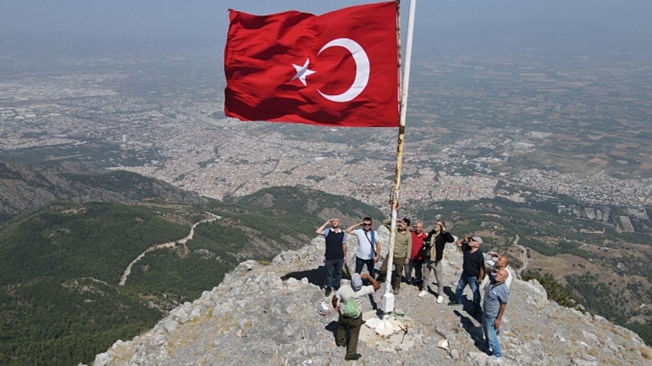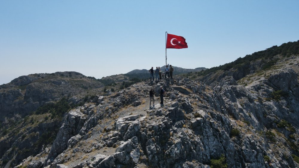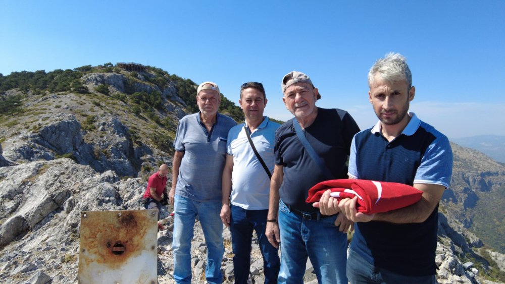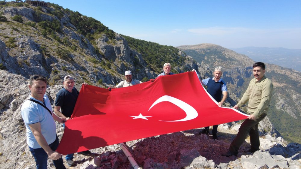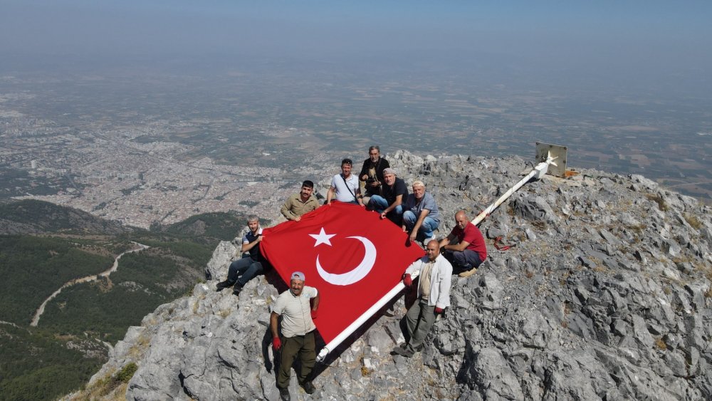 Orman yangınları nedeniyle ormanlık alanlara giriş çıkışların yasaklanması ve Milli Park sahasında yapılan tadilat çalışması nedeniyle bir süredir bayraksız kalan Bayrak Tepe’deki bayrak direğine Manisalı Gaziler ve Milli Park personeli işbirliğinde göndere 6 metrekarelik bayrak törenle çekildi.