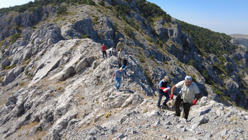 Spil Dağı Milli Parkı Şefi Özcan Öz ve Milli Park personeli işbirliğinde adını bayrağımızdan alan Turan Bayrak Tepeye birlikte tırmandılar.