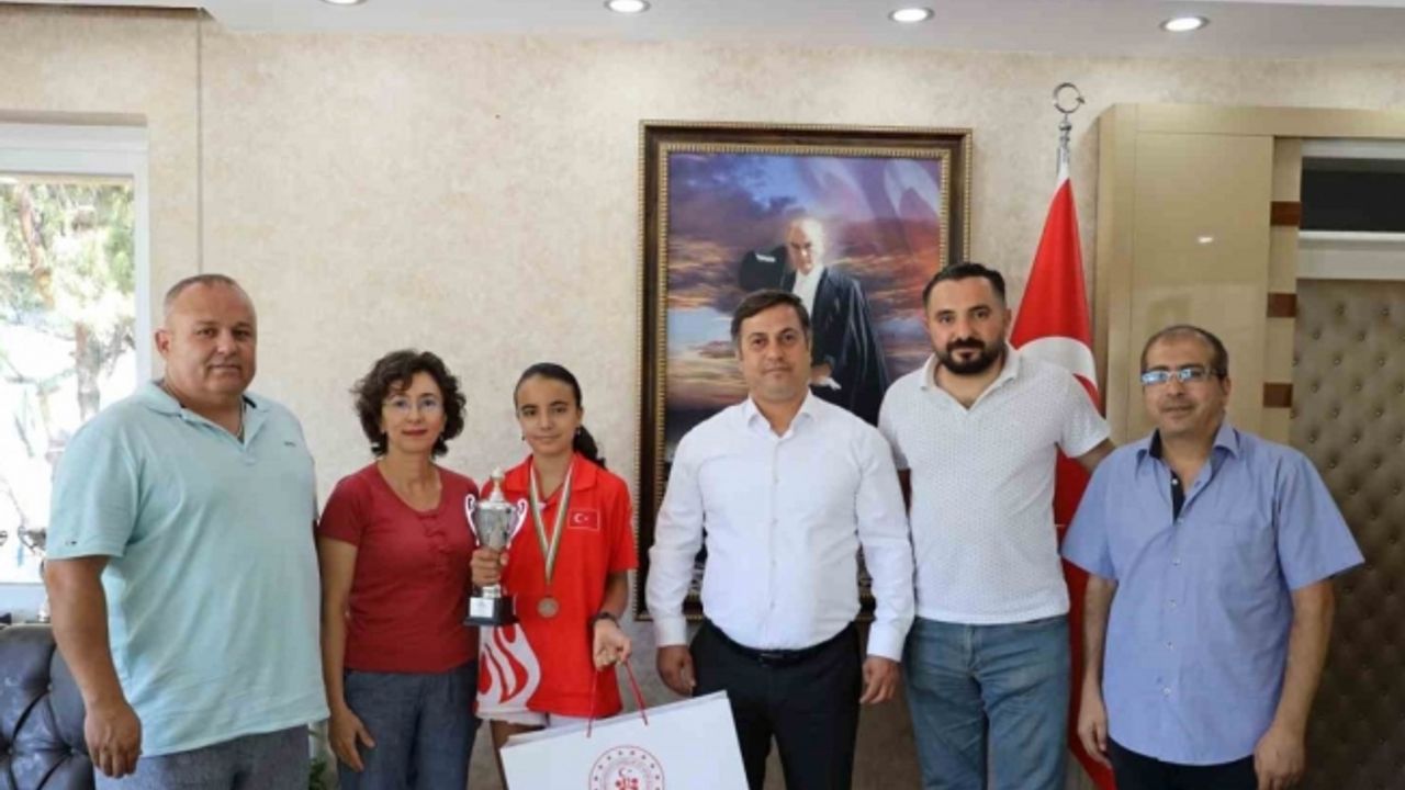 Antrenör Can Filiz ve Satranç Federasyonu Yönetim Kurulu Üyesi Dr. Olcay Aknalbant ile Manisa Satranç İl Temsilcisi Hakan Karakafa’nın da yer aldığı ziyarette İl Müdürü Öztürk, Elif Deniz’i bu büyük başarısından ötürü ödüllendirdi.