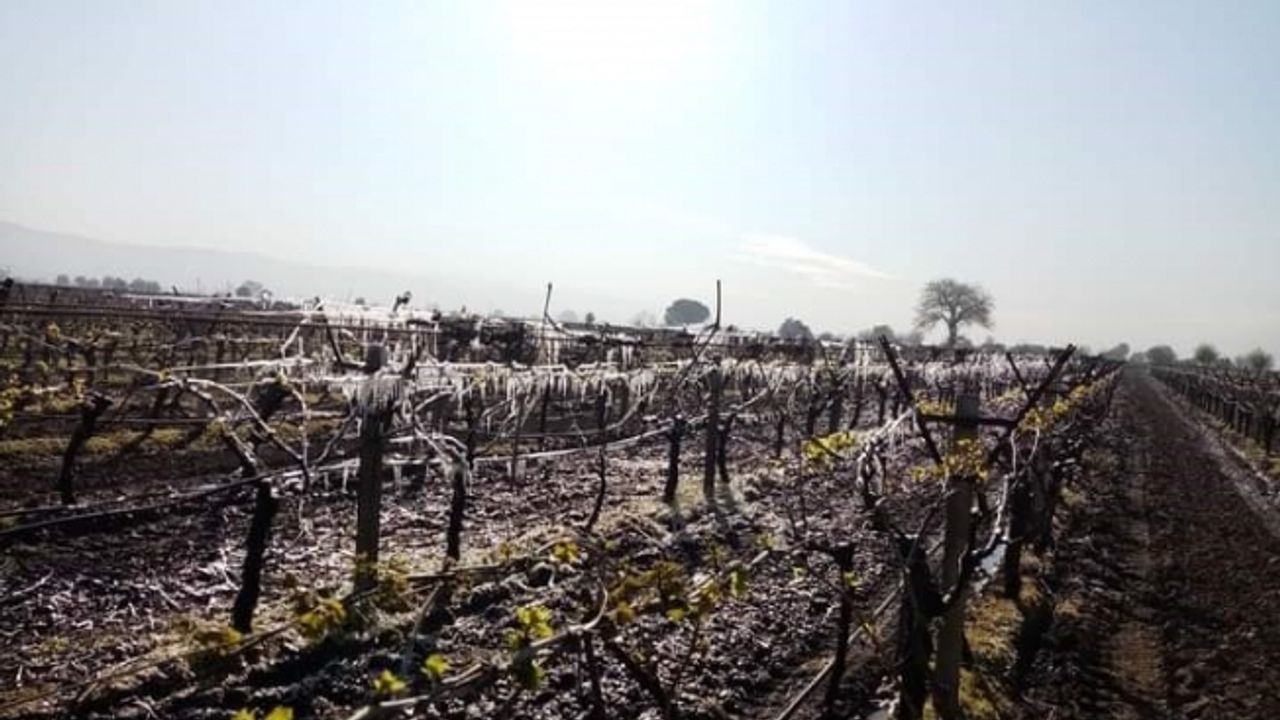 Manisa’nın Saruhanlı, Akhisar, Gölmarmara, Turgutlu, Salihli, Alaşehir ve Sarıgöl ilçelerinde hava sıcaklığının eksi derecelere düşmesi sonucu meydana gelen don olayında yapraklanmaya başlayan üzüm bağlarında yüzde 70 ila yüzde 80 arasında zarar yaşandığı öğrenildi. Alanda incelemeler devam ederken don olayının devam edeceği açıklandı.