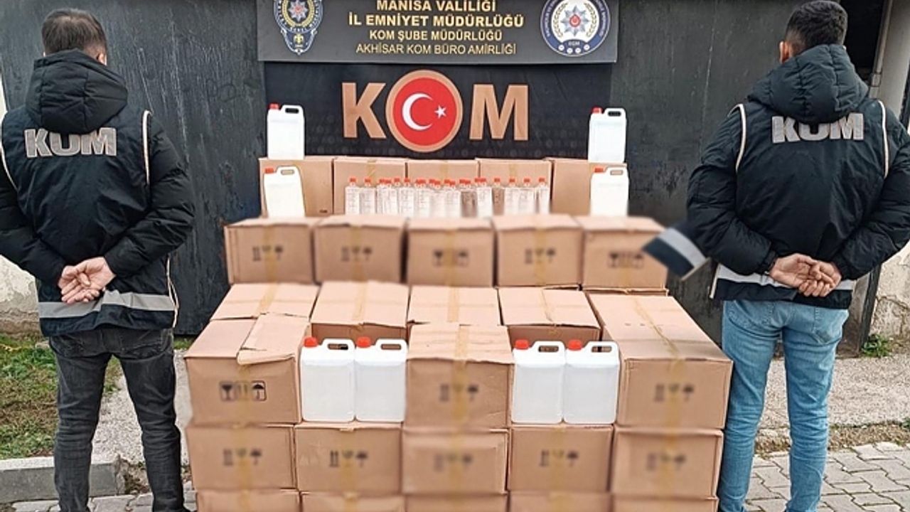 KOM Başkanlığı koordinesinde ülke genelinde alkollü içki kaçakçılığı ve sahteciliğinin önlenmesine yönelik Manisa İl Emniyet Müdürlüğü KOM Şube Müdürlüğü ve ilçe emniyet müdürlüklerinin katılımıyla; Yunusemre, Şehzadeler, Akhisar, Salihli, Turgutlu, Ahmetli, Kırkağaç ve Alaşehir ilçelerinde çalışmalar neticesinde tespit edilen 14 adrese yapılan eş zamanlı operasyonda; 3 bin 550 litre etil alkol, 800 litre fermente alkol, 112 şişe gümrük kaçağı viski, 12 litre sahte şarap, 12 litre sahte rakı, 6 bin 541 adet sahte bandrol, 530 adet şişe kapüşonu, 840 adet (dal) içi kıyılmış tütün doldurulmuş makaron (sigara) ele geçirildi.