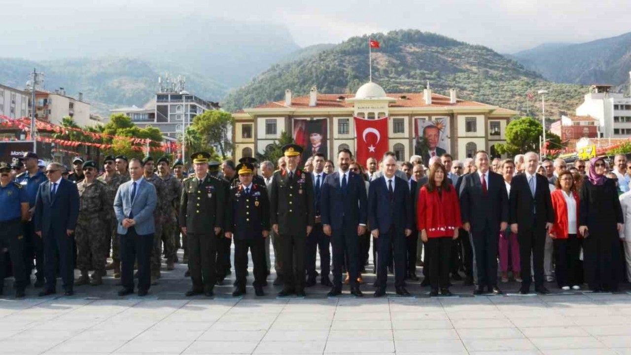 Cumhuriyet Meydanı'nda gerçekleştirilen törene, Manisa Valisi Vahdettin Özkan, Kara Kuvvetleri Eğitim ve Doktrin Komutanı (EDOK) Eğitim Tümen Komutanı Tümgeneral Emre Tayanç, AK Parti Manisa Milletvekili Mücahit Arınç, İYİ Parti Manisa Milletvekili Şenol Sunat, Manisa Büyükşehir Belediye Başkanı Besim Dutlulu, Manisa Celal Bayar Üniversitesi Rektörü Prof. Dr. Rana Kibar, Manisa Cumhuriyet Başsavcısı Kurtca Eker, 8. Komando Eğitim Tugay Komutanı Piyade Albay Cengiz Güven, İl Jandarma Komutanı Tuğgeneral İlhan Şen, 8. Komando Eğitim Tugay Komutanı Piyade Albay Cengiz Güven, İl Emniyet Müdürü Fahri Aktaş, kaymakamlar, ilçe belediye başkanları, siyasi parti il ve ilçe başkanları ve protokol üyeleri takip etti.