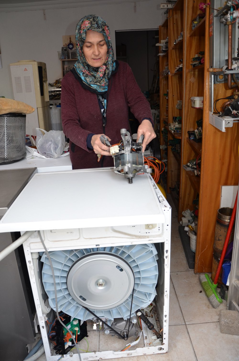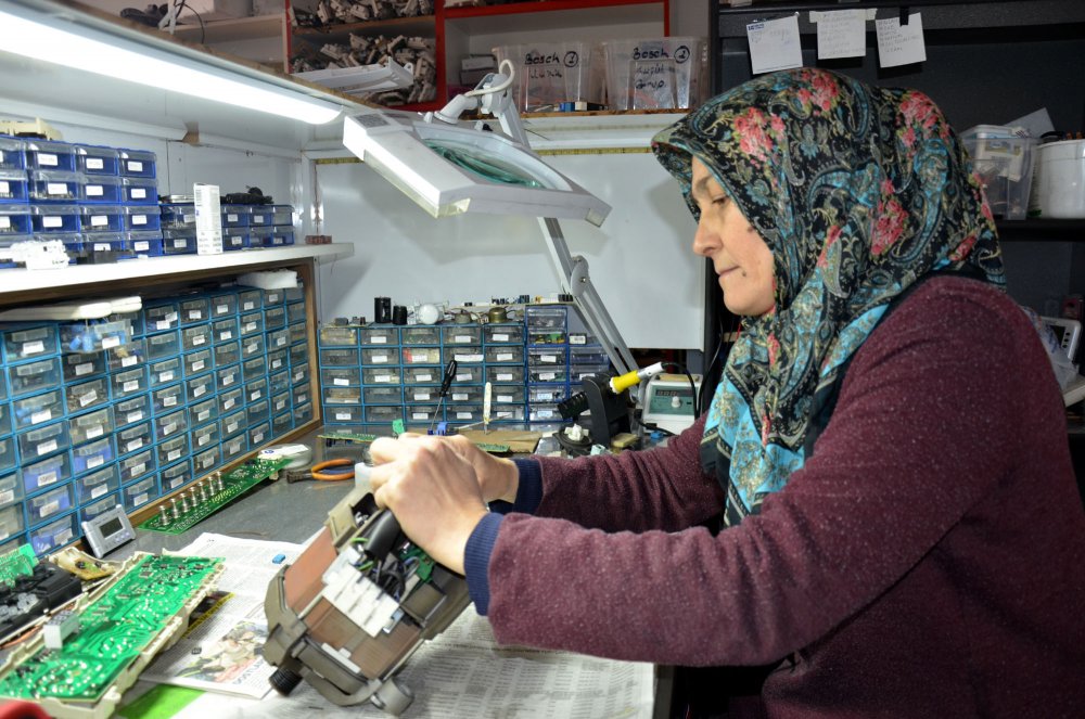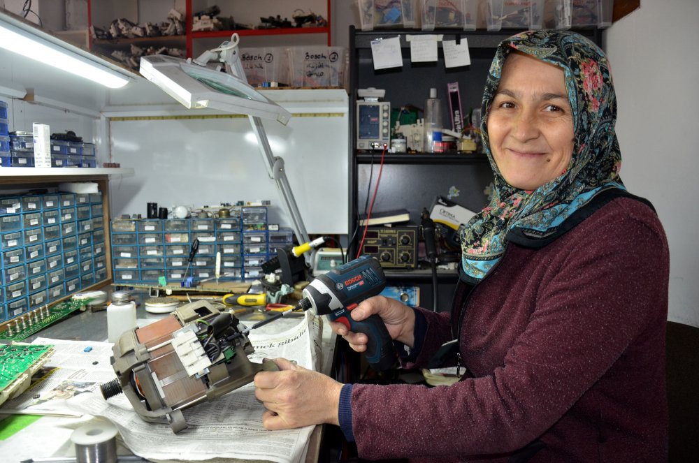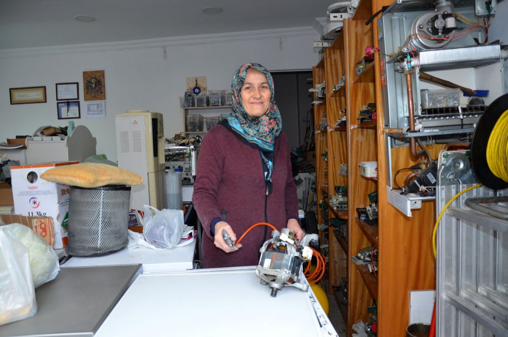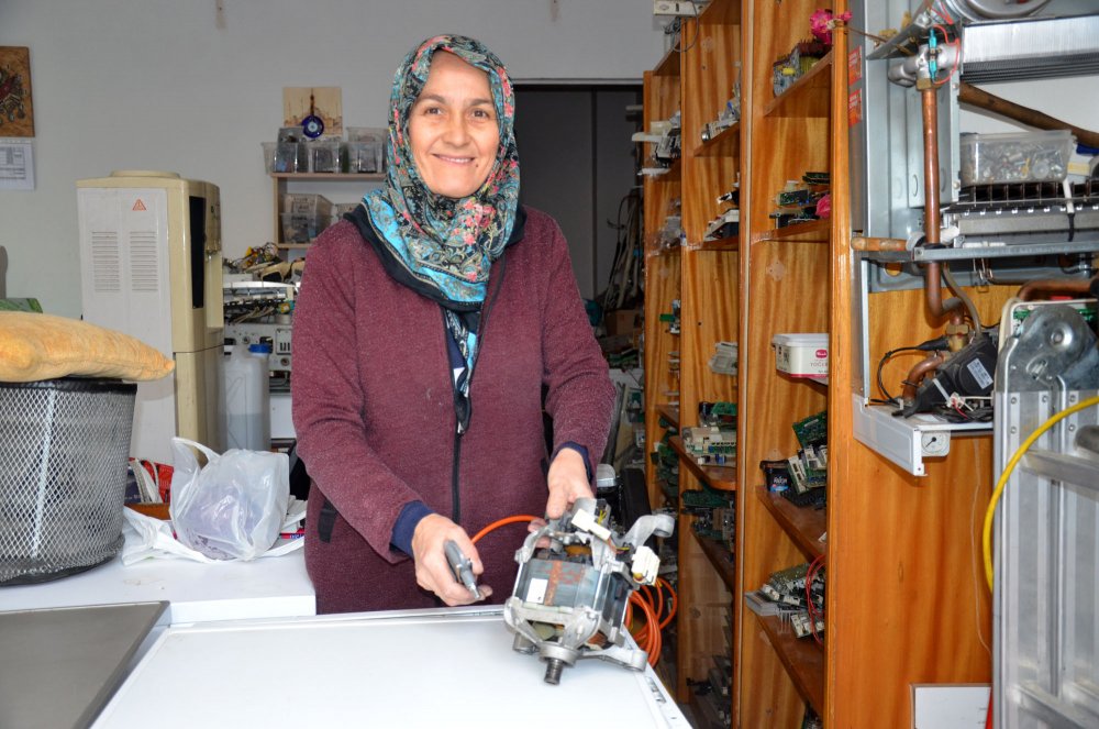 Kadınların kimseye muhtaç olmamasını isteyen Hatice Şeşen, “Önce eşimle birlikte malzemeleri tanıdım, onunla söküp taktım. Sürekli göre göre de öğrendim. Şimdi çamaşır, bulaşık makinesi, klima, kombi, buzdolabı tamiratını yapıyorum. Makineleri söküp takıyorum, topluyorum. Eşim emekli oldu, şuanda bana yardımcı oluyor. Evlere servise gittiğimde kadın tamirciyi gördüklerinde şaşırıyorlar. Çoğu insan takdir ediyor, bazıları ‘sen mi yapacaksın’ diyerek şaşırıyor. Erkeklerin daha sağlam yapacağını düşünüyorlar. Ben işimi çok seviyorum. Kadınlar yapamam diyerek düşünmesin, her şeyi istemek önemli. Ben muhtaç olmaktan çok korkarım. Kimseye muhtaç olmayalım” diye konuştu.