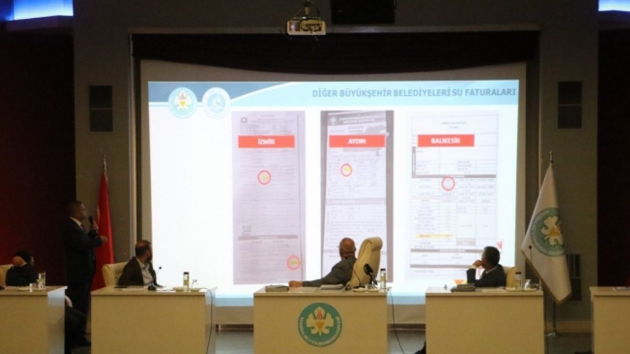 Aslay, diğer Büyükşehir Belediyelerinin su faturalarını komisyon üyelerine de dağıttıklarını ifade ederek, “Sıralama yapılırken faturaya yansıyan tüm bedellerin dikkate alınması gerekir. Su bedeli, atık su bedeli ve bakım bedeli. Bakım bedellerine baktığımızda; Sakarya SASKİ 15 Lira, Tekirdağ TESKİ 11 Lira, Trabzon TİSKİ 4,5 Lira, Ordu OSKİ 14,72 Lira alıyor. MASKİ Genel Müdürlüğü ise herhangi bir bakım bedeli almıyor. İlçe Belediyelerinin Katı Atık Toplama Bedeli, Büyükşehir Belediyelerinin bertaraf bedeli, ÇTV ve KDV’leri dahil ettiğimiz zaman haziran ayı fiyatlarına göre 14’üncü sıradayız” dedi.