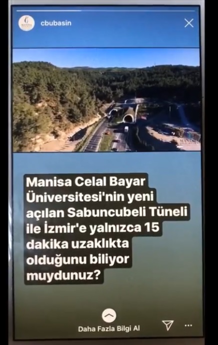 Manisa Celal Bayar Üniversitesi, öyle bir skandala imza attı ki görenlerin duyanların nutku tutuldu. Şehre olan katkısı her geçen yıl büyümesi gereken MCBÜ, bir tanıtım videosu çekti ve sosyal medyada yayımladı. O videoda, “Manisa Celal Bayar Üniversitesi artık İzmir’e çok daha yakın. Yeni açılan Sabuncubeli Tüneli ile Manisa-İzmir arası sadece 15 dakika. Manisa’da okuyun, İzmir’de yaşayın. Tercih sizin.” Bu sözler, Manisa’yı ayağa kaldırdı.