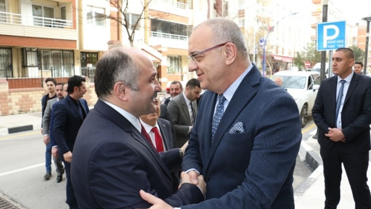 Manisa Büyükşehir Belediye Başkanı Cengiz Ergün, MHP Grup Başkanvekili Erhan Usta’yı makamında ağırladı. Bir konferansa katılmak üzere Manisa’ya geldiğini dile getiren MHP Grup Başkanvekili Erhan Usta, Manisa Büyükşehir Belediye Başkanı Cengiz Ergün’e çalışmalarında başarılar diledi.