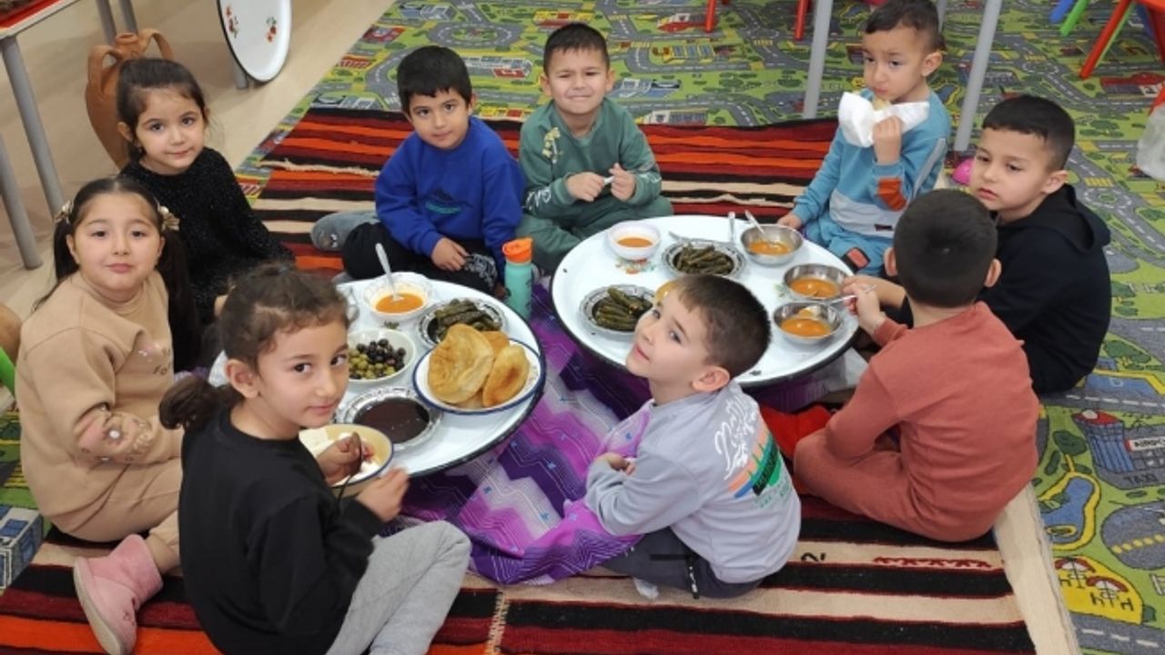 Manisa’nın Sarıgöl ilçesi Bağlıca Halil Duran Anasınıfı öğretmen, öğrenci ve velileri, ’Dilimizin zenginlikleri’ projesi kapsamında Türk Kültürünü yaşatmak amacıyla velilerin hazırladıkları yiyeceklerle yer sofrasında kahvaltı yaptı.