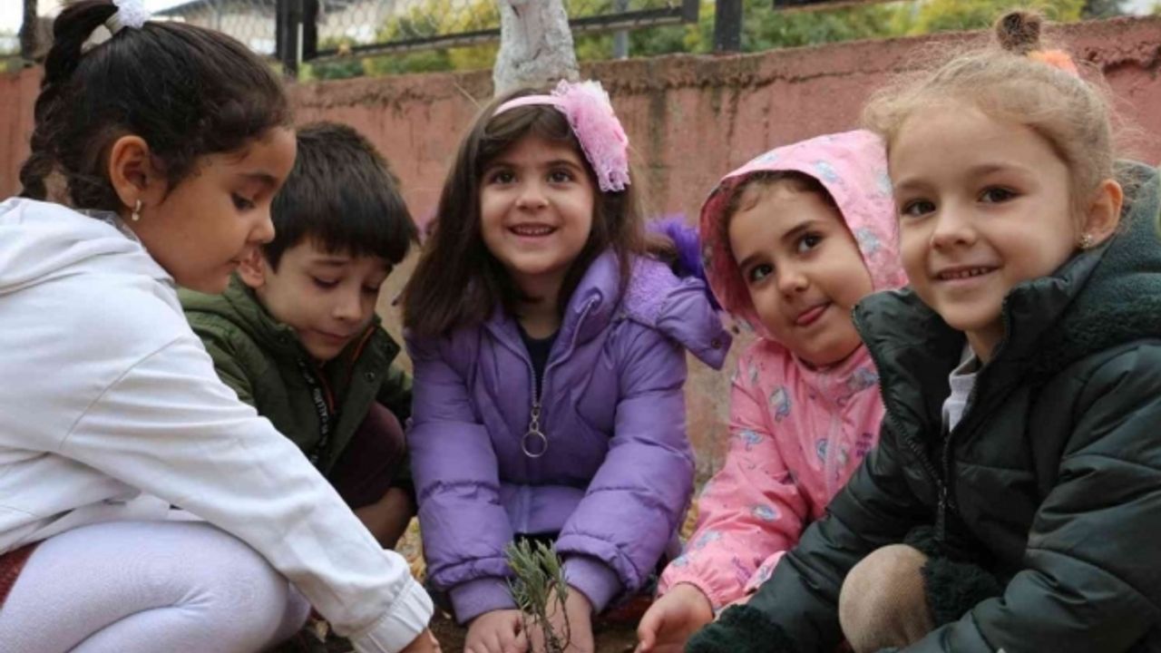 Manisa’nın Turgutlu ilçesinde Anaokulu öğrencileri "Yeşil Okul" projesinde okul içerisinde bulunan boş alanda lavanta fidanı dikimi yaptı.