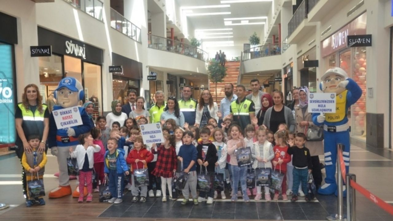 Yunusemreli minikler, Trafik Haftası dolayısıyla Forum Magnesia AVM’de düzenlenen etkinlikte trafik kurallarını öğrendi.
