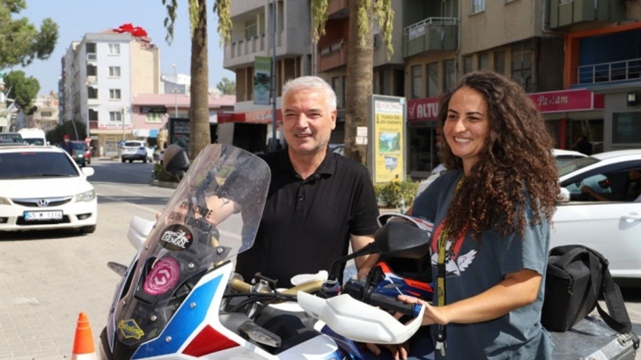 ’Kadınlar için daha özgür bir dünya’ sloganıyla 18 yıldır motosikletiyle Türkiye’yi ve dünyayı dolaşan İstanbul Gedik Üniversitesi Spor Bilimleri Fakültesi Öğretim Görevlisi Asil Özbay, bir süre önce çıktığı Türkiye turu kapsamında Manisa’nın Saruhanlı ilçesinde mola verdi.