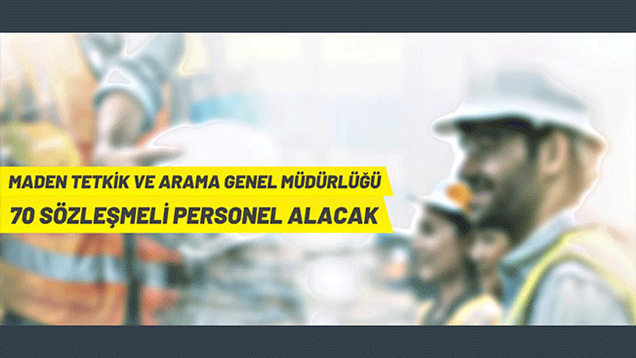 Maden Tetkik ve Arama Genel Müdürlüğü, merkez ve taşra birimlerinde 657 sayılı Devlet Memurları Kanunu ve Sözleşmeli Personel Çalıştırılmasına İlişkin Esaslara göre istihdam edilmek üzere 2020 yılı KPSS (B) grubu puan sıralamaları esas alınmak suretiyle yazılı ve sözlü sınav yapılmaksızın 70 sözleşmeli personel alacak.