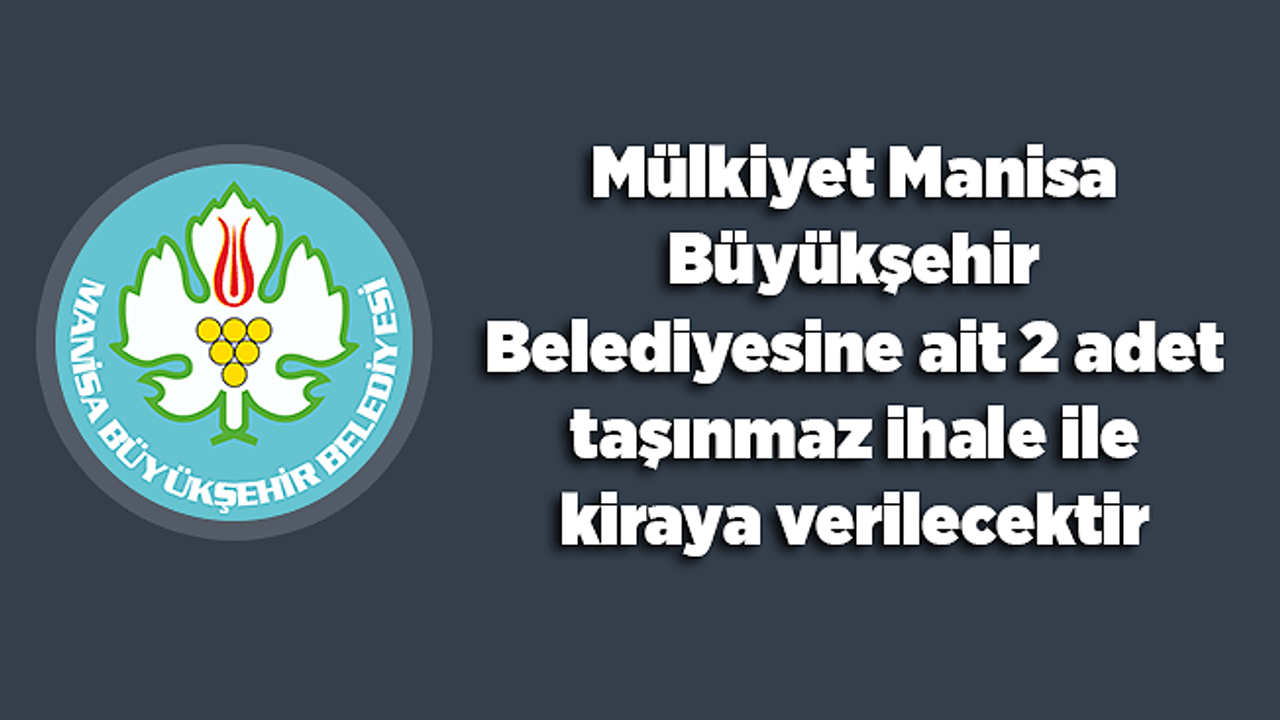 İhalenin Konusu: Mülkiyeti, hüküm ve tasarrufu Belediyemize ait aşağıda adresi, kira süresi, metrekaresi, aylık muhammen kira bedeli, geçici teminat bedeli, şartname doküman bedeli, ihale günü ve saati yazılı taşınmazlar; 2886 sayılı Devlet İhale Kanununun 45. maddesi uyarınca açık teklif usulü ile ihale edilecektir. (Kiralanacaktır) İhale; Laleli Mahallesi Mimar Sinan Bulvarı No:242 Yunusemre / MANİSA adresinde bulunan Manisa Büyükşehir Belediyesi Encümen Salonunda Encümen huzurunda yapılacaktır.