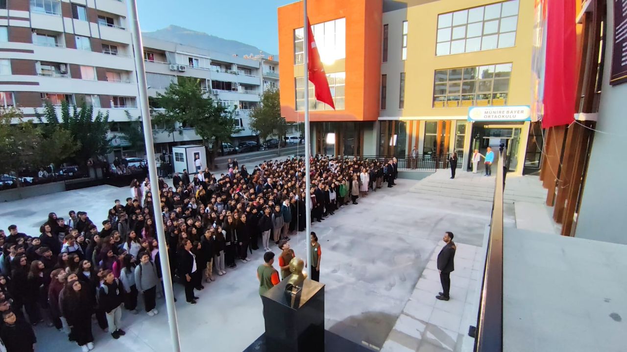 Modern mimarisi ve barındırdığı donatılarıyla bir üniversite binasını andıran Münire Bayer Ortaokulu, barındırdığı ünitelerle de dikkat çekiyor. Dinlenme alanları, amfisi, bilişim laboratuarları, okul aile birliği odası, spor salonu, modern teknolojiye uygun su deposu, açık hava tiyatrosu ve geniş okul bahçesiyle büyük bir kompleks olan okul yüksek tavanları ve bol gün ışığı alan sınıflarıyla ön plana çıkıyor.