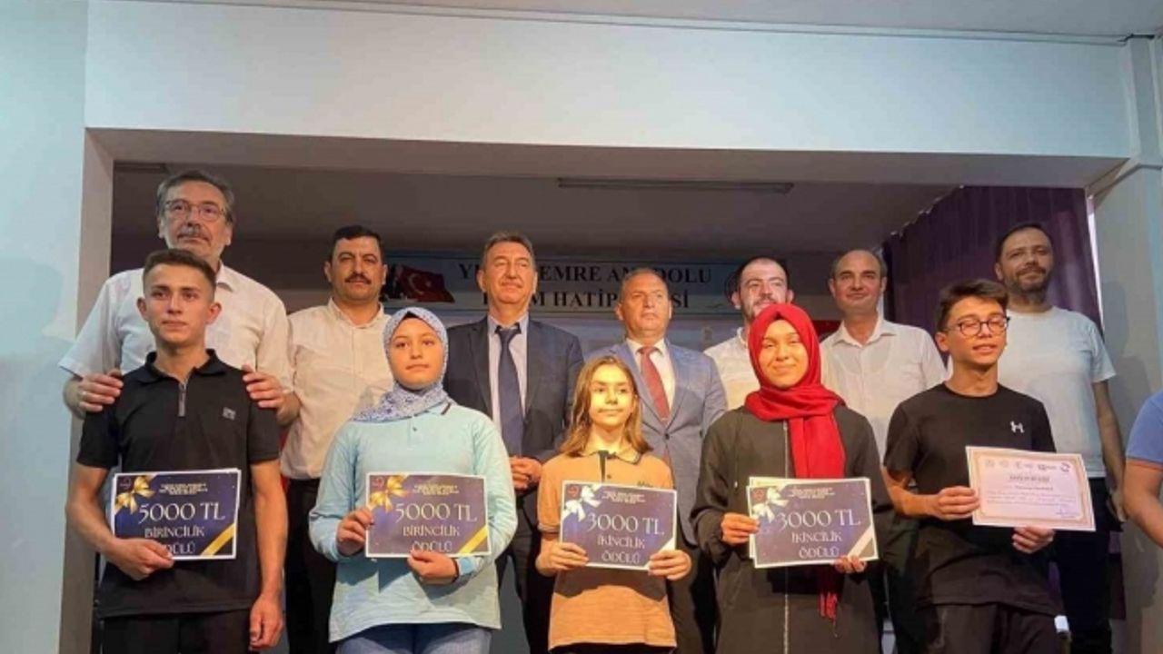 Manisa Yunus Emre Anadolu İmam Hatip Lisesi’nde düzenlenen yarışmada ödülünü alan İbrahim Müzaç, okuluna dönüşünde arkadaşları ve öğretmenleri tarafından coşkuyla karşılandı.