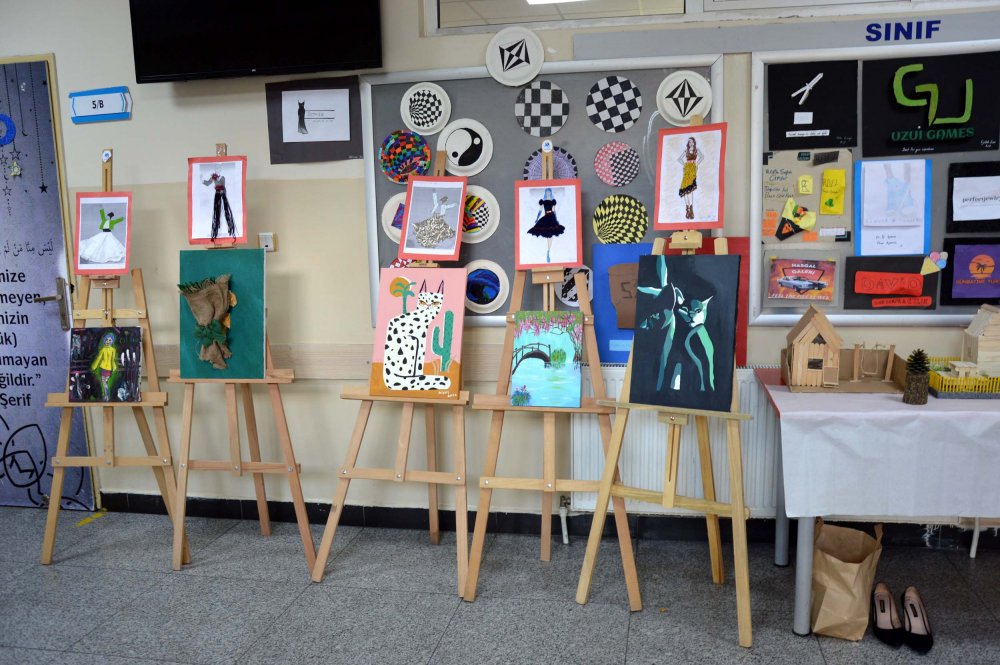 Görsel Sanatlar Öğretmeni Nuray Yaman da, “ Yıl boyunca çeşitli tekniklerde yaptığımız yaptıklarımız var. Örgü, kolaj çalışması gibi çeşitli tekniklerde eserleri yaptık” diye konuştu.