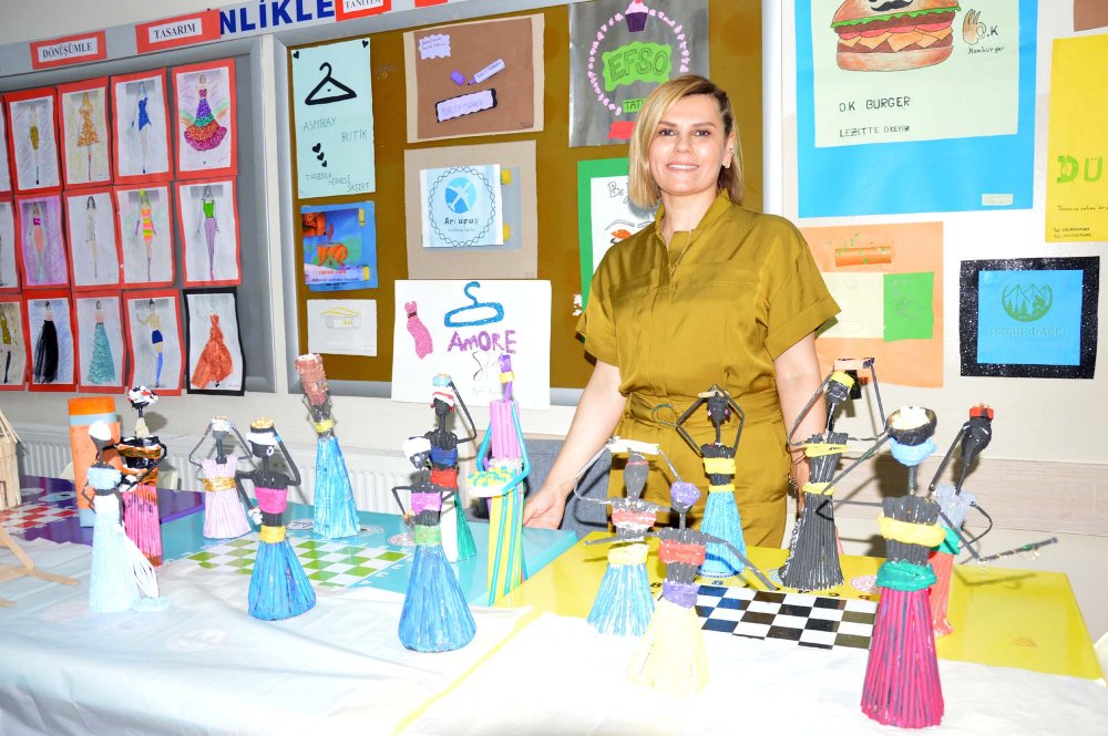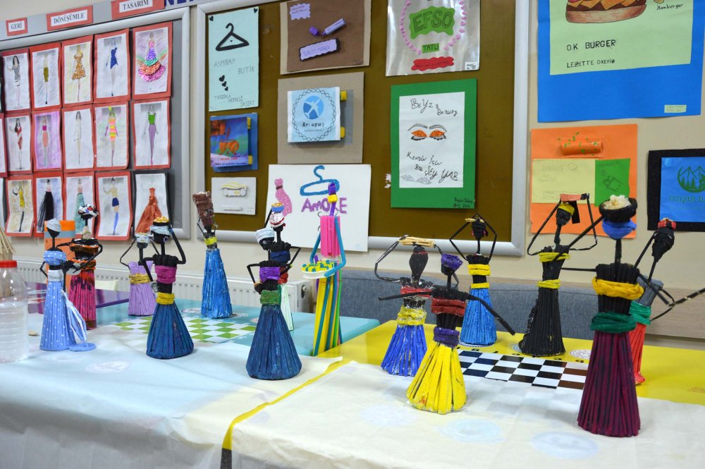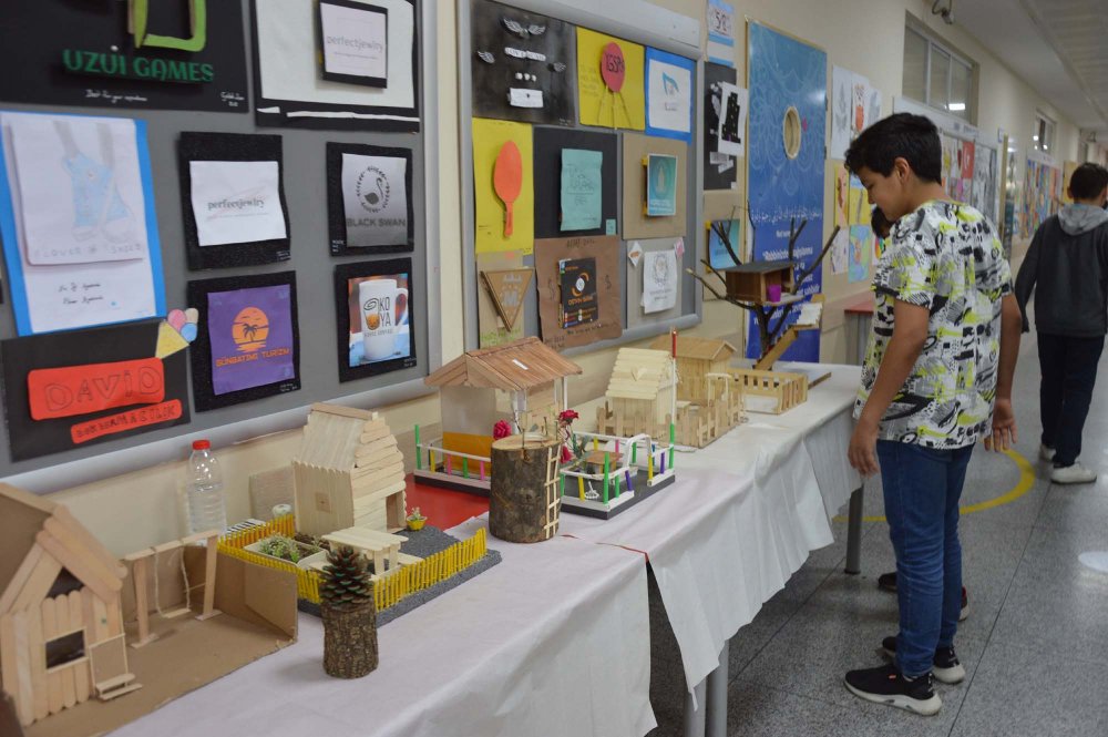 Yapılan çalışmalar hakkında bilgi veren Teknoloji ve Tasarım Öğretmeni Fatma Yıldız Uğurlu, “Öğrencilerimizin eğitim öğretim yılı başından itibaren yaptığı çalışmaların tamamını sergiliyoruz. Teknoloji tasarım alanında bizim çalışmalarımız arasında yapısal tasarım, mimari tasarım, özgün ürün tasarlama, tanıtım pazarlama çalışmaları yer alıyor. Tanıtım ve pazarlamada öğrenciler kendi seçtikleri bir üründe marka, logo, slogan ortaya çıkarıyor. Mimari tasarımda hayallerindeki yaşamak istedikleri konutları tasarlıyorlar. Yapısal tasarında asma köprü çalışmaları yer alıyor. Temel tasarımda geri dönüşümle sanat adı altında eserler yaptık” dedi.
